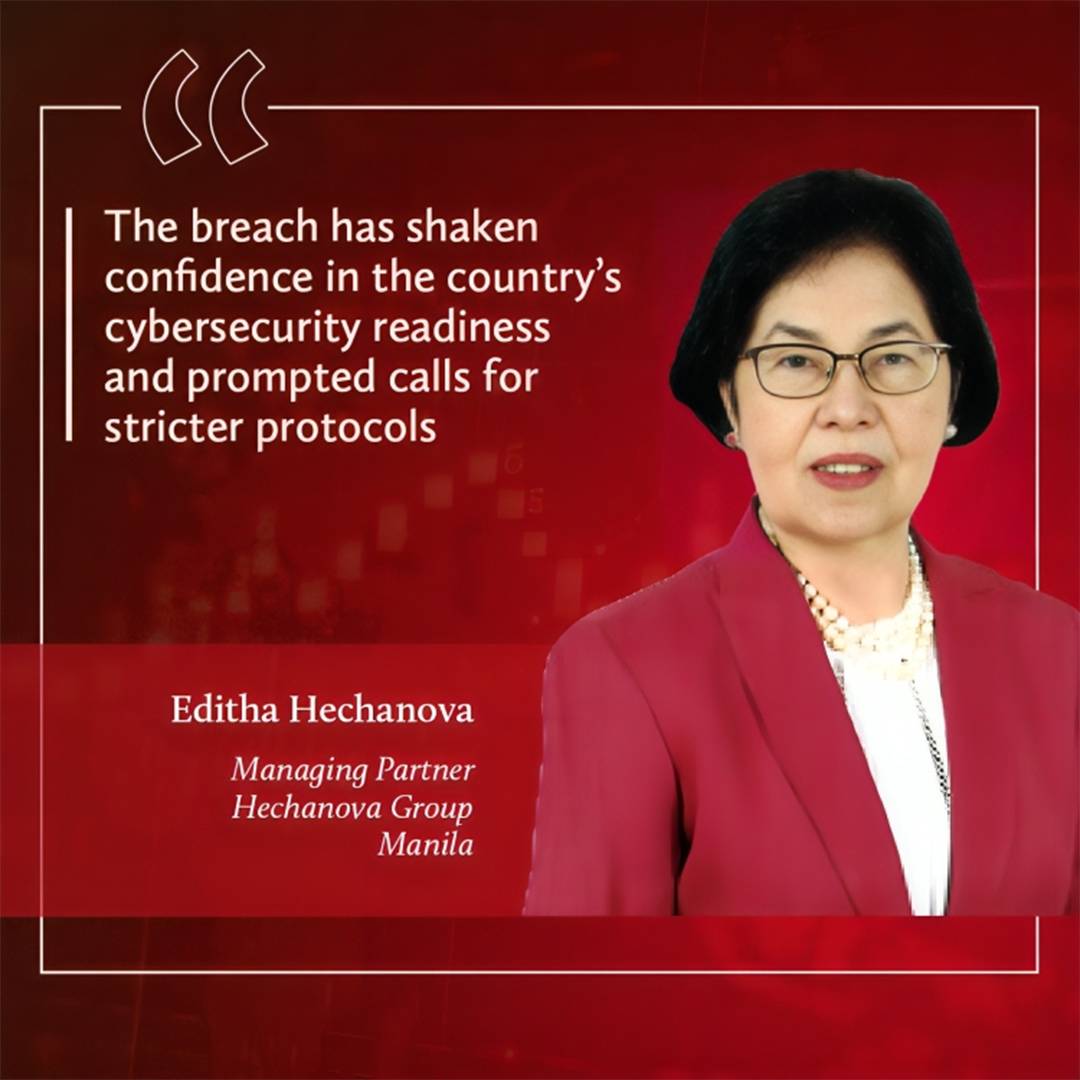 “The breach has shaken confidence in the country’s cybersecurity readiness and prompted calls for stricter protocols,” she says. In her firm’s advisory work, Hechanova observes that “clients whose products have built some goodwill internationally have been targeted by online infringers whose identity is difficult to obtain from registrars … and the local police is grappling with the issue of jurisdiction”.